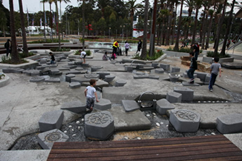 “貪”字迷宮沒有其它出口,只有上橋進(jìn)入“廉”字唯一出口; 而“廉”字迷宮有多個(gè)出口,這多個(gè)出口正好與旁邊水塘板塊連接成游憩路徑——這也正好寓意“貪無出路,廉為正道”。