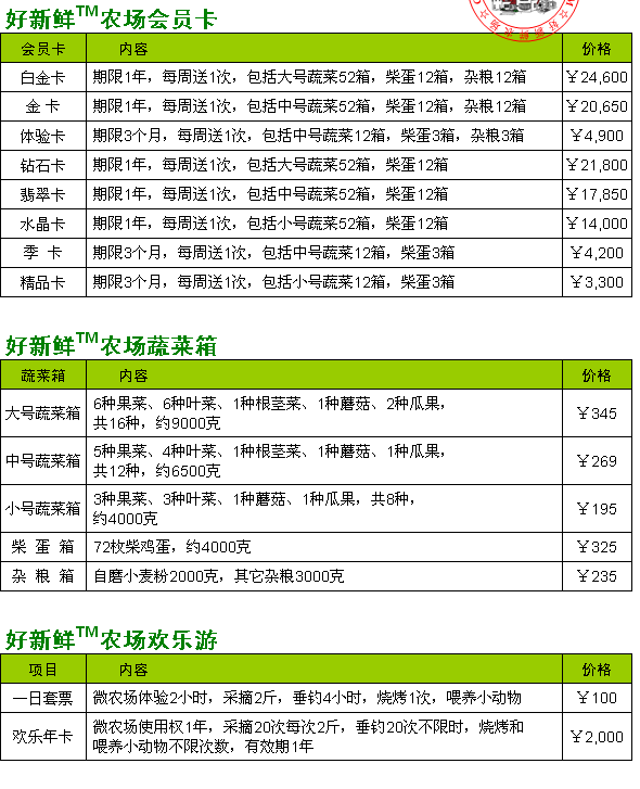 典型案例:天津好新鮮會員制私人農(nóng)場http://www.haoxinxian.com.cn/index.asp 從下表可以看出,除了配送業(yè)態(tài)外,還有“農(nóng)場歡樂游”這樣的休閑業(yè)態(tài)。