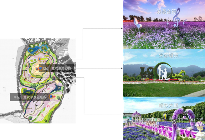 (1)北區(qū)“薰衣草婚紗園“:側(cè)重觀光與婚紗攝影。