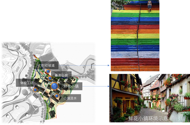 小鎮(zhèn)主題格調(diào):延伸薰衣草莊園“浪漫”主題;