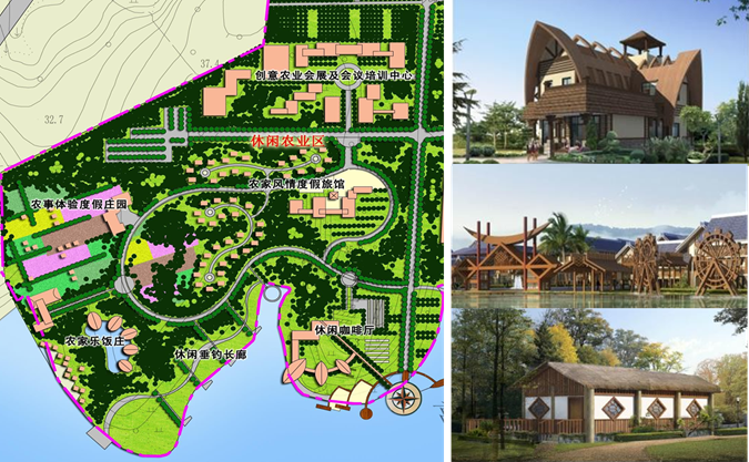 近期建設項目:包括農家 樂飯莊、休閑 垂釣長廊、農 家風情村等項 目。