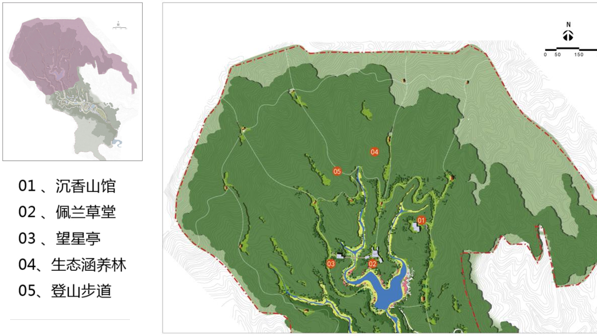 以山林生態(tài)涵養(yǎng)為主要功能,散種各種中草藥,以康體健身觀光為主要旅游內(nèi)容,配套游步道、旅游綜合服務(wù)設(shè)施。