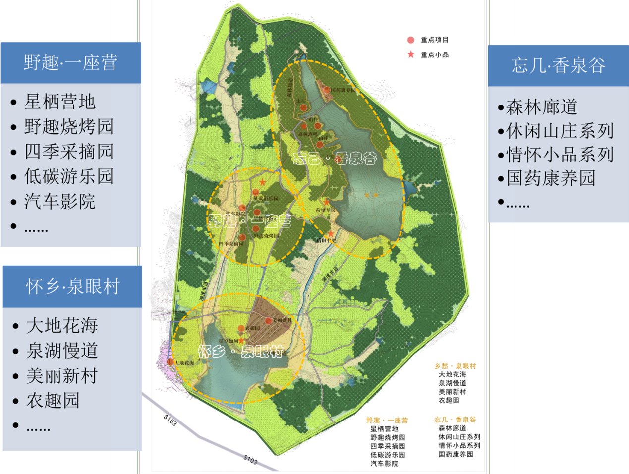 策劃定位篇 一、野百合也有春天——換個(gè)視角看資源傳統(tǒng)視角看,本項(xiàng)目資源并無(wú)類(lèi)似“泰山雄、衡山秀、華山險(xiǎn)”之類(lèi)的高大上主題開(kāi)發(fā)價(jià)值。、 但換個(gè)視角:隨著工業(yè)化、城市化的負(fù)面影響凸現(xiàn),人們產(chǎn)生了強(qiáng)烈的“返璞歸真”意識(shí)。不再一味追求高大上的旅游主題! 本項(xiàng)目中:鄉(xiāng)村田野所呈現(xiàn)的懷舊價(jià)值、豐富的野雞野鴨野豬所呈現(xiàn)的生態(tài)價(jià)值,都可能成變新型旅游吸引物! 二、2小時(shí)黃金法則——休閑時(shí)代論區(qū)位2-3小時(shí)自駕車(chē)程是公認(rèn)的大城市的城郊休閑旅游最佳區(qū)位。 太近,地理景觀風(fēng)貌與城市景觀差異性太小,吸引力不足 太遠(yuǎn),駕駛疲勞,不符合周末休閑快捷輕松的需求 本案距離省會(huì)兩小時(shí)車(chē)程,高度符合一般休閑區(qū)位規(guī)律 三、主題定位野趣體驗(yàn)天堂,心靈撒野家園 主題定位闡釋?zhuān)簱P(yáng)長(zhǎng)避短資源,彰顯 “野美野趣”生態(tài)主題,將其融入到田園風(fēng)光、山地游樂(lè)、森林度假系列產(chǎn)品中。 規(guī)劃設(shè)計(jì)篇 一、產(chǎn)品結(jié)構(gòu)1、前衛(wèi)野趣型產(chǎn)品 引領(lǐng)小資市場(chǎng)/培育文化魅力的關(guān)鍵 2、歡樂(lè)撒野型產(chǎn)品 粘合親子市場(chǎng)/近中期市場(chǎng)盈利杠桿 3、鄉(xiāng)村農(nóng)家樂(lè)產(chǎn)品 大眾旅游休閑/旅游扶貧的有效手段 4、野奢度假型產(chǎn)品 迎合高端市場(chǎng)/中遠(yuǎn)期市場(chǎng)盈利核心 二、空間布局