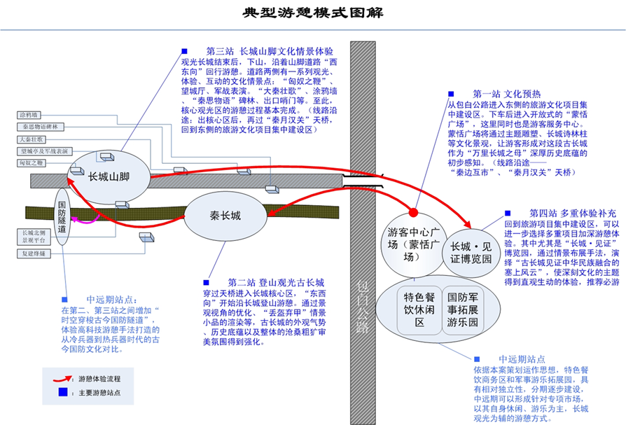 4、最后,綜合上述策劃、規(guī)劃、設計成果,形成了秦長城旅游區(qū)自身獨特的游憩方式