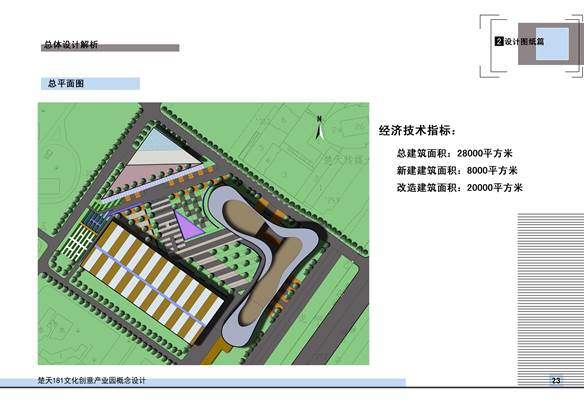 (改造效果圖) 1、戰(zhàn)略定位 老廠房資源依托——決定了181地塊可以走上海田子坊、北京798的路子(即loft藝術(shù)倉庫手法) 。形成若干“創(chuàng)意生產(chǎn)空間”。 毗鄰城市休閑勝地東湖風(fēng)景區(qū)——決定了181地塊除了能承載前衛(wèi)的“創(chuàng)意生產(chǎn)空間”外,還類似上海新天地、適合承載前衛(wèi)的“時尚消費(fèi)空間” 2、設(shè)計理念 首先,建筑外觀要有異形沖擊力(以彌補(bǔ)原有建筑半老不老、建筑文化客觀不足缺陷) 其次,建筑內(nèi)涵要做到三大文化呼應(yīng)。 (1)對工業(yè)遺產(chǎn)文明的呼應(yīng) (2)對東湖優(yōu)美生態(tài)環(huán)境的呼應(yīng) (3)對業(yè)態(tài)功能結(jié)構(gòu)的呼應(yīng) 3、設(shè)計解析