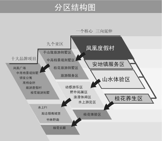 十大品牌項(xiàng)目:打造鳳凰廣場(chǎng)、中高檔景觀別墅、“銀發(fā)”公寓、高檔會(huì)所、旅游度假村、桂花旅游別墅、桂花長(zhǎng)廊、水上F1、竹林野趣、勵(lì)志鍛煉城堡十個(gè)品牌項(xiàng)目,用項(xiàng)目吸引游客。