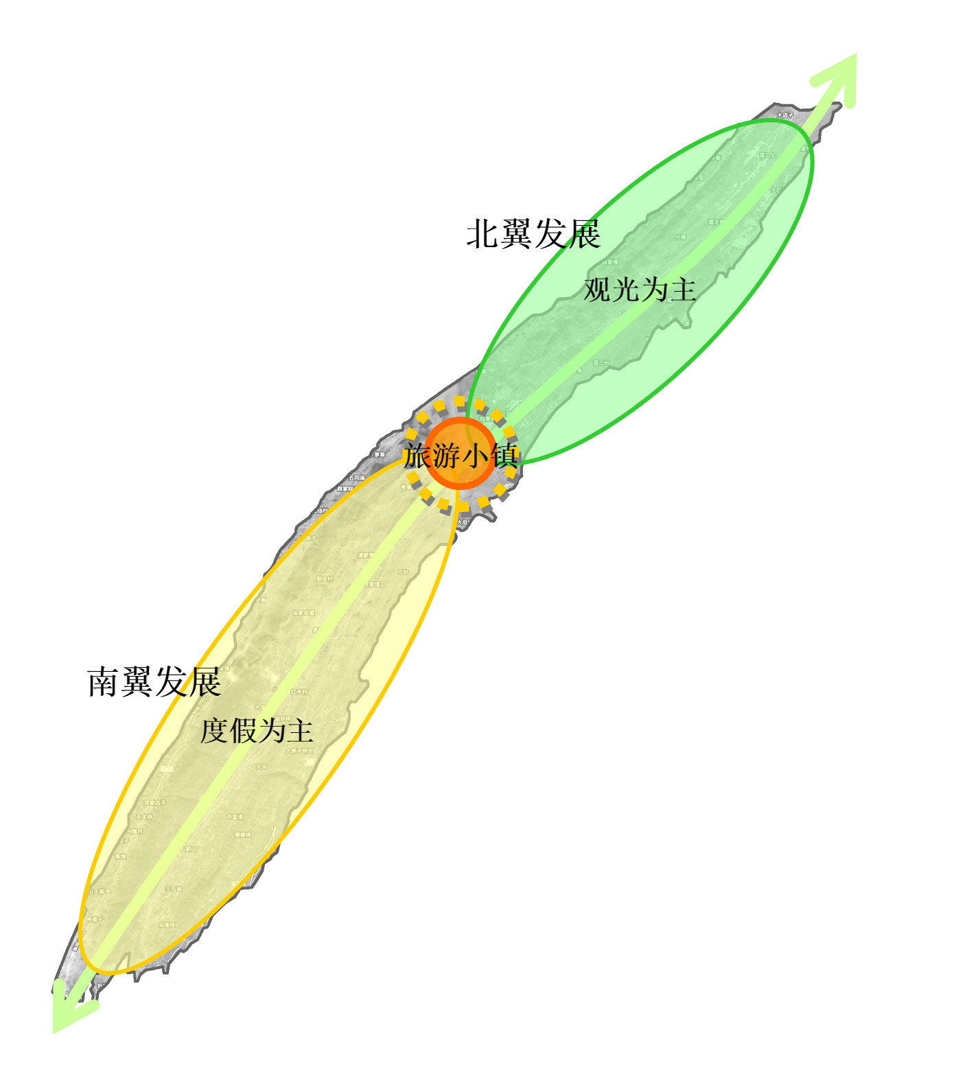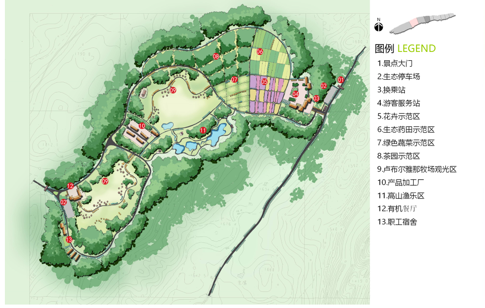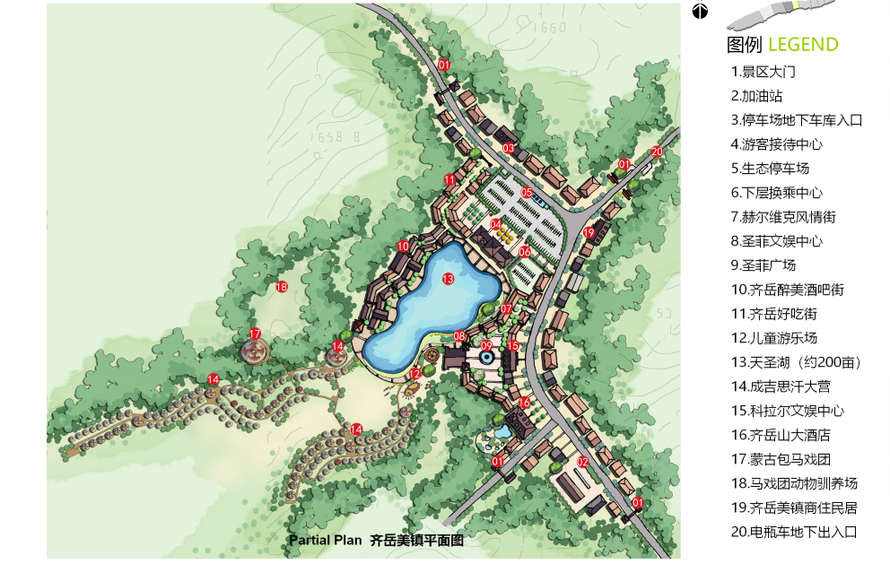 南翼為度假區(qū),包括:國際戶外運(yùn)動(dòng)中心、齊岳草場度假區(qū)、生態(tài)農(nóng)業(yè)休閑區(qū)、自然風(fēng)光區(qū)。南北相輔相成,