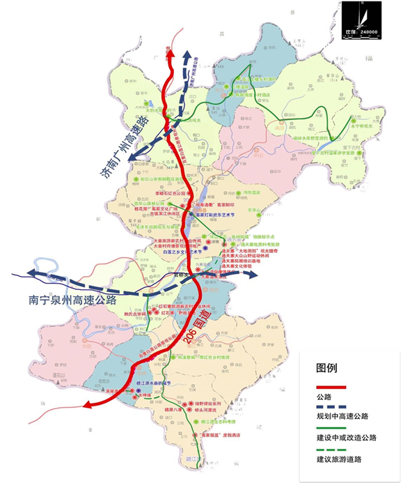 一心:縣城旅游服務(wù)集散中心(同時也是客家古鎮(zhèn)風(fēng)情旅游區(qū))