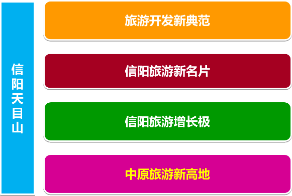 從中國(guó)旅游發(fā)展趨勢(shì)視角出發(fā),整合和統(tǒng)籌天目山旅游資源、土地資源、城鄉(xiāng)格局,以國(guó)內(nèi)市場(chǎng)需求為導(dǎo)向,構(gòu)建中原山地精品養(yǎng)生度假旅游景區(qū)。同時(shí),通過(guò)核心度假資源,創(chuàng)建精品度假休閑產(chǎn)品、多層級(jí)度假體系,打造中原地區(qū)休閑養(yǎng)生運(yùn)動(dòng)的首選基地。成為國(guó)際知名、國(guó)內(nèi)一流的山地休閑養(yǎng)生度假區(qū)。【北京至道規(guī)劃:規(guī)劃前瞻避免投資損失,規(guī)劃創(chuàng)意提升投資效益】