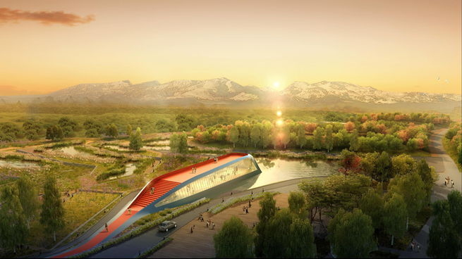 設(shè)計以最小干預(yù)為原則,采用整體保護(hù)、邊緣利用 的開發(fā)模式,集中力量建設(shè)城市邊緣的生態(tài)緩沖區(qū)。 打造一個“整體綠、局部精”的國家級濕地公園。