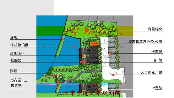 根據(jù)葉坪舊址區(qū)規(guī)劃框架,結(jié)合游客游程需求,在景區(qū)南側(cè)安排了一處公共停車(chē)場(chǎng),距離主干道206國(guó)道20米。另外一處在貴賓通道的盡頭。第三處在漂游碼頭。