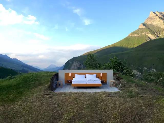 嗯…… 你沒(méi)看錯(cuò), 這真的是一家酒店, 名叫Null Stern Hotel, 位于瑞士阿爾卑斯海峽旁邊, 格爾賓登州山的一片草地上。
