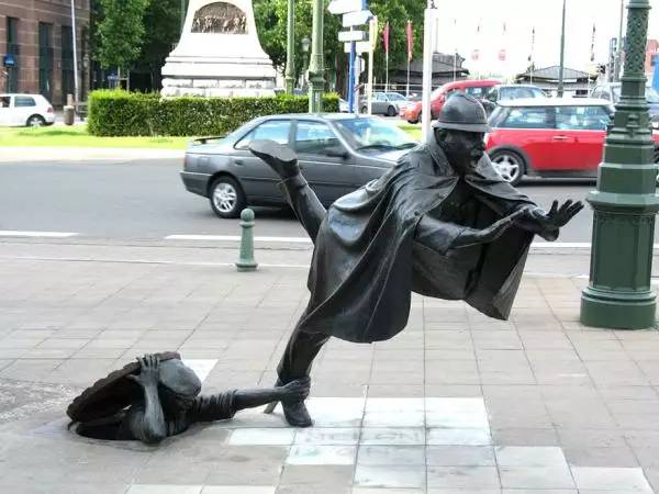 Tom Frantzen于1985年創(chuàng)作的《捉弄警察的叛逆少年》如今已經(jīng)成為布魯塞爾必看的街頭景觀之一。一位正在巡視的警察被一個藏在下水道里的男童突然抓住腳踝,藝術(shù)家將這一刻凝固起來,為街頭的游客們活靈活現(xiàn)地再現(xiàn)了出來。