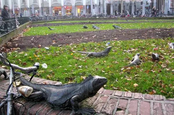 《鬣蜥公園》已經(jīng)成了阿姆斯特丹著名的一景,世界各地的人都前來觀賞這些靜止的鬣蜥。鬣蜥的真身雖然難以見到,但是這里能見到大量的銅鬣蜥,也是一種別致的景象。