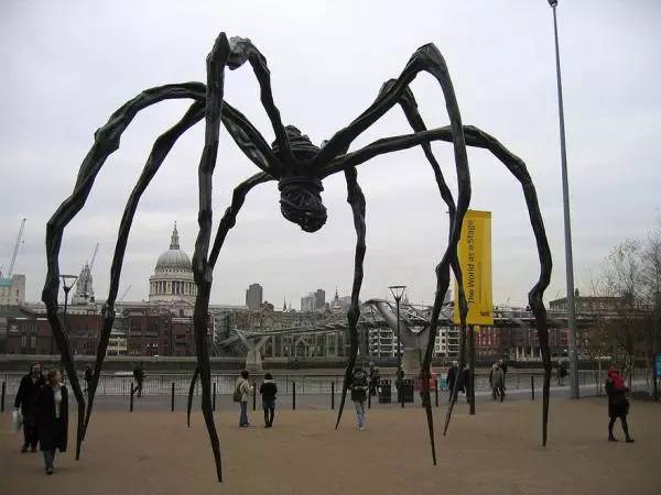 路易斯·布爾喬亞這件著名的作品《母親》已是倫敦泰特藝術(shù)博物館的著名景觀之一。布爾喬亞晚期的作品均與自己童年“被遺棄”的創(chuàng)傷經(jīng)歷有關(guān),父親移情,母親早逝。她將蜘蛛喻作母親,巨大的身軀與細(xì)長直入地面的腿,對子女來說是保護(hù),也是牢籠。