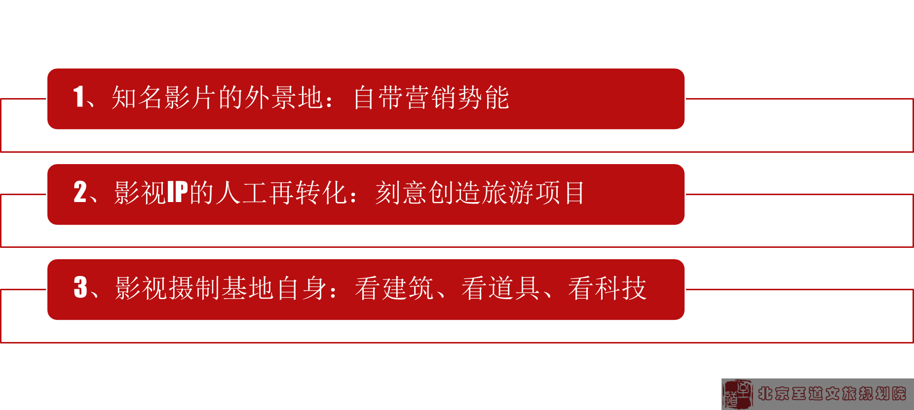 理論層面,全球影視旅游業(yè),無非三大類型 ;當(dāng)然實踐層面,成功的影視旅游目的地,還可能整合不止一種類型。這是北京至道規(guī)劃院多年行業(yè)實踐觀察的實證。