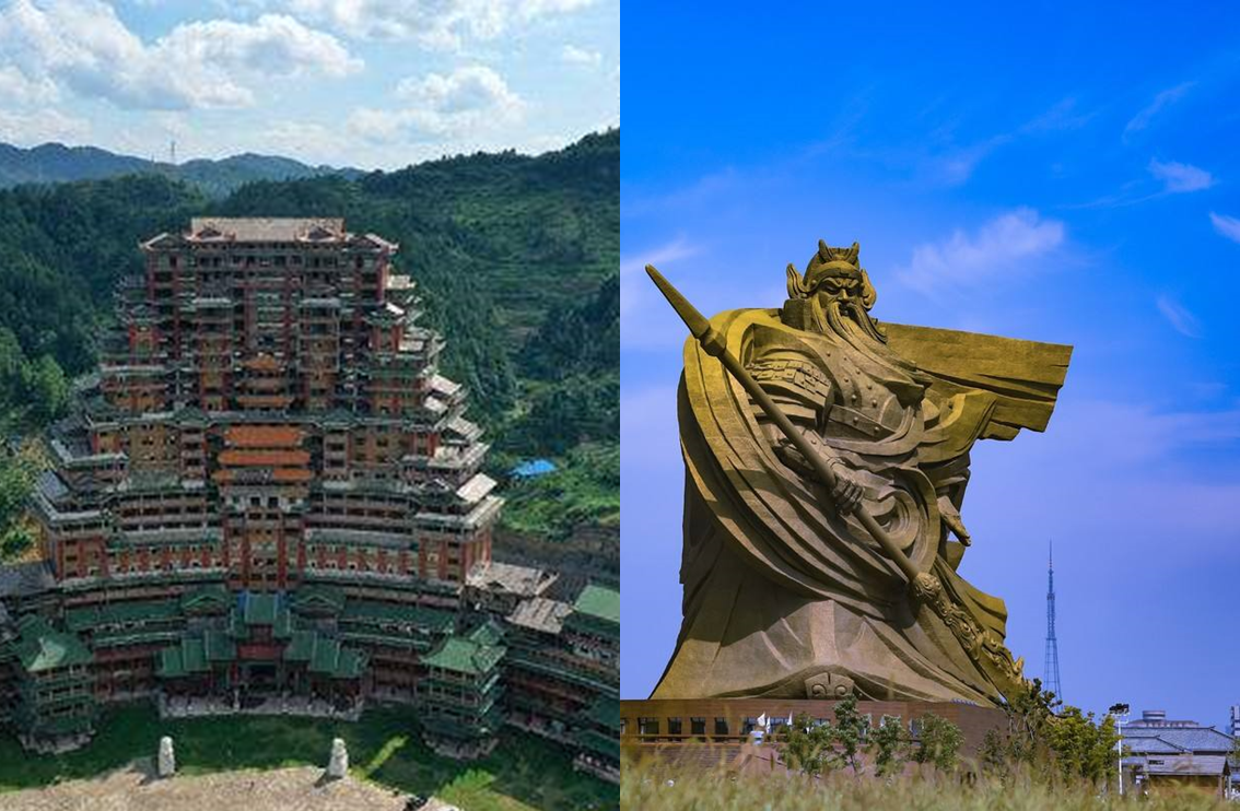 先說這倆共同特點(1)都炮制出“天下第一“,獨山縣的號稱天下第一水司樓,耗資2億;荊州的號稱全球最大的關公像,耗資15億。(2)都是”馬后炮“式新聞,獨山水司樓于2016年開建2018年爛尾;荊州關公像2016年落成,已經開業(yè)幾年了。但舊聞變新聞都在2020年。
