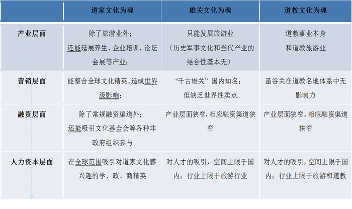 在該項目的道教、道家、名關(guān)三大文脈中,我們力排眾議選取“道家文化”作為文創(chuàng)園區(qū)的開發(fā)主題定位。為什么呢?也正是因為道家文化主題,從產(chǎn)業(yè)規(guī)劃、到營銷造勢、到招商渠道,具備更強大的主題貫穿性,帶動性,能使得項目迎刃而解: