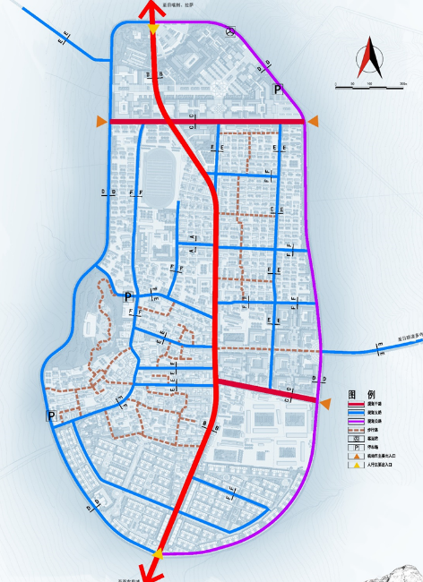 主要通過在老城區(qū)建立完整的步行系統(tǒng)以及結(jié)合現(xiàn)有的204省道來實(shí)現(xiàn)。