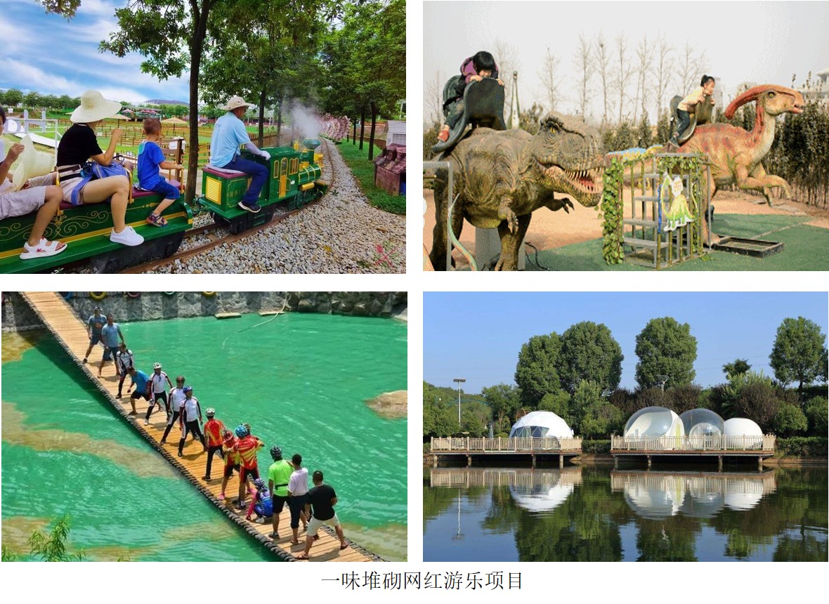 這類親子旅游莊園是往往不斷堆砌游樂設(shè)施,追逐所謂網(wǎng)紅項目。例如流行小火車----就趕緊買個小火車;流行仿真恐龍----就整一堆恐龍;流行彩虹滑梯----就整個大滑梯;流行搖擺橋----就趕緊搭個搖擺橋;流行星空屋----就搞個星空屋露營項目;流行玻璃水滑道----就立馬整個玻璃滑道;流行玻璃橋----趕緊在景區(qū)做個玻璃橋;流行激光秀----又琢磨上馬激光秀。