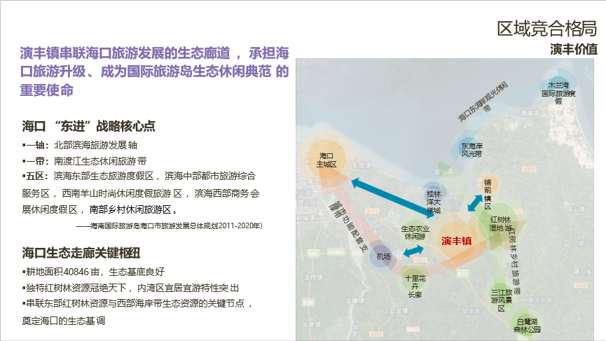 演豐鎮(zhèn)串聯(lián)??诼糜伟l(fā)展的生態(tài)廊道,承擔(dān)??诼糜紊壋蔀閲H旅游島生態(tài)休閑典范的重要使命。演豐鎮(zhèn)目前規(guī)劃共有23個重點項目,總用地面積7.3萬多畝,項目類型主要包括旅游地產(chǎn)、現(xiàn)代農(nóng)業(yè)、運動休閑等。旅游地產(chǎn)類4個,現(xiàn)代農(nóng)業(yè)類8個,運動休閑類6個,這三類項目都同質(zhì)化競爭較激烈!